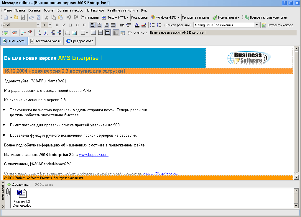 AMS Enterprise - самая популярная программа среди профессионалов в Мире Email маркетинга.